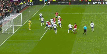 第38分钟,曼联球员B费禁区前沿过顶长传,达洛特右路插上,停球之后起脚劲射,皮球高出横梁。